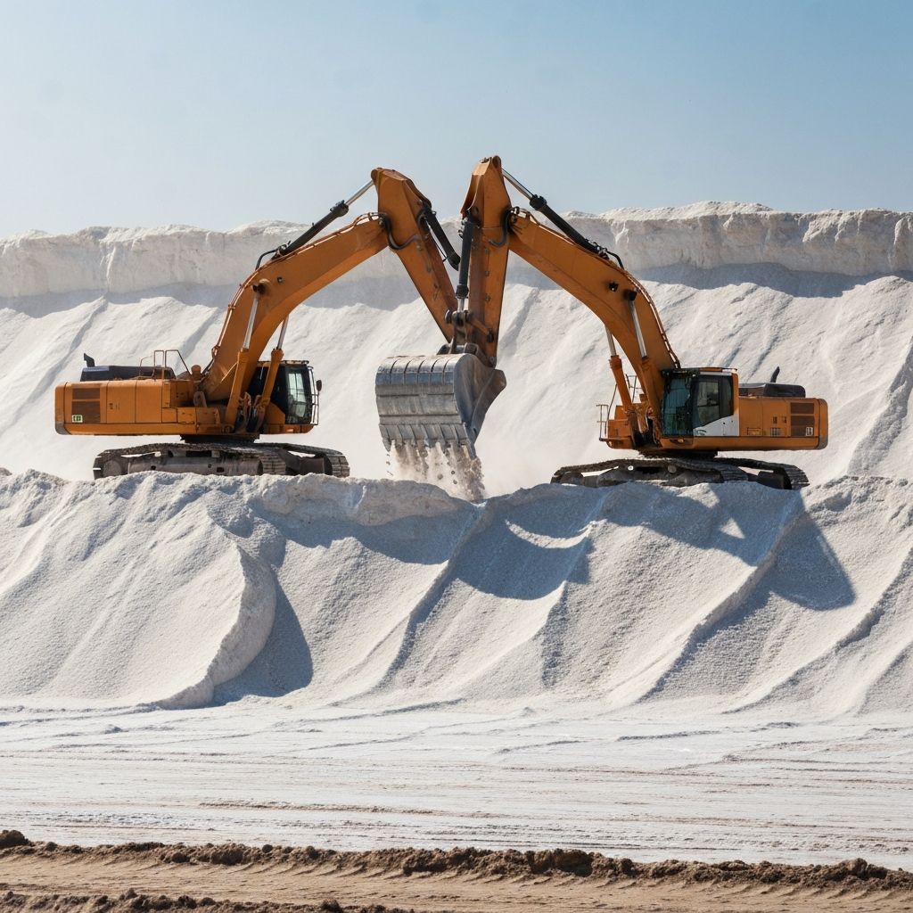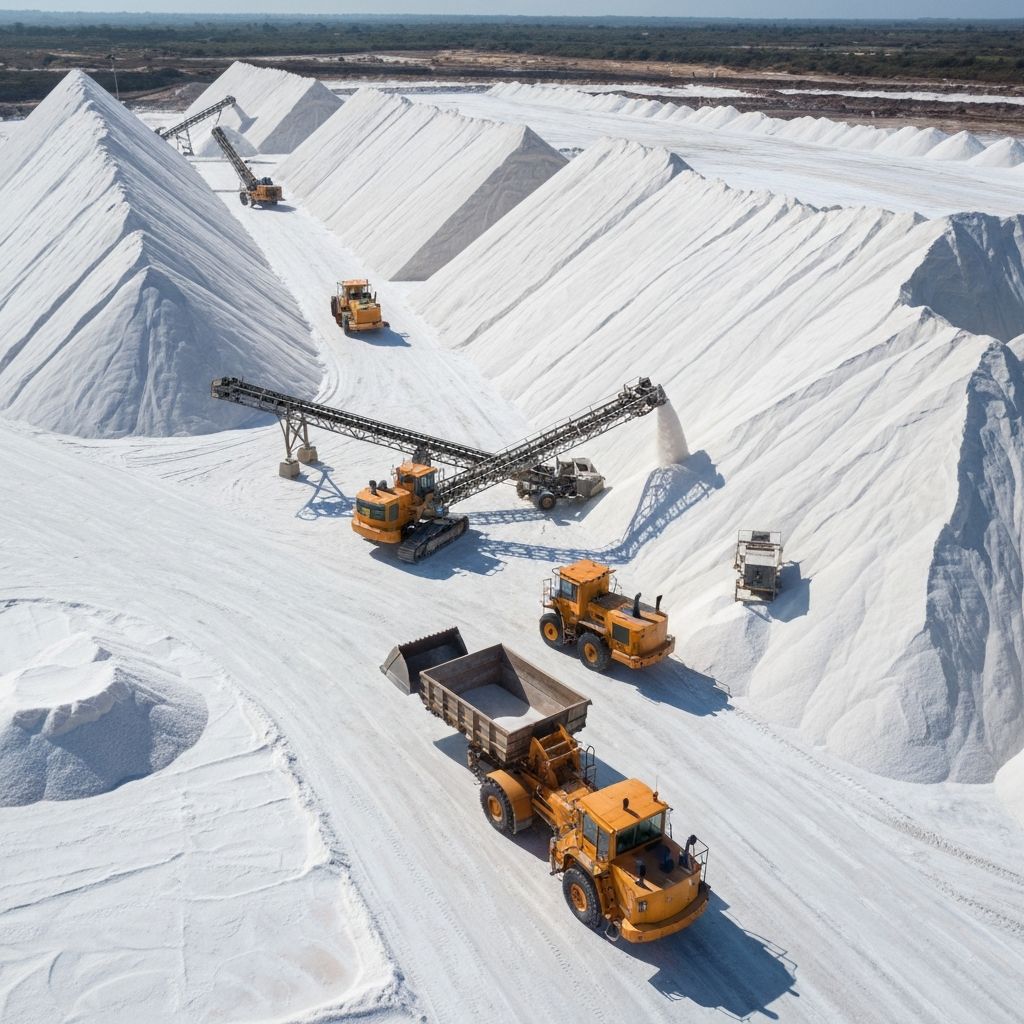 Industrial rock salt mining operations in Siwa, Egypt, supplying high-quality salt for de-icing and industrial applications worldwide.